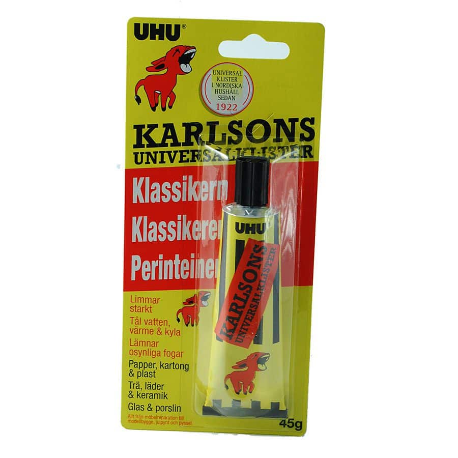 Universellt – limmar trä, träbaserade material, plast (ABS, hård och mjuk PVC, Plexiglas®, Resopal®), metall, glas, porslin,keramik, läder, gummi, filt, kork, textilier, kartong, papper.Inte lämpligt till polyeten, polypropen.